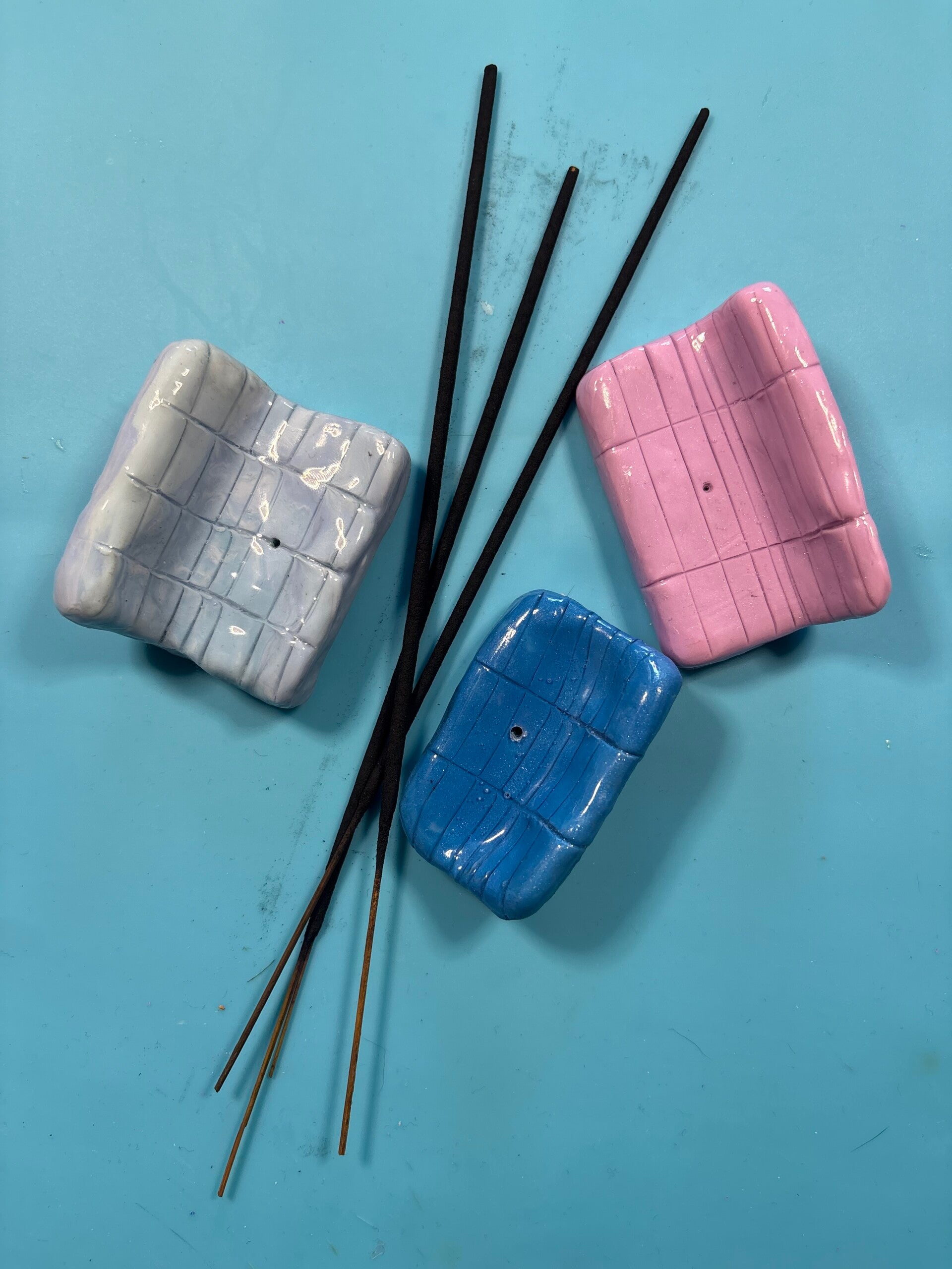 3 handmade pastel colored insence holder sofas made out of polymer clay.
